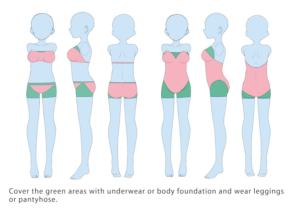 - ・Use underwear or body foundation for costumes that do not cover the bottom or sides of your breasts.