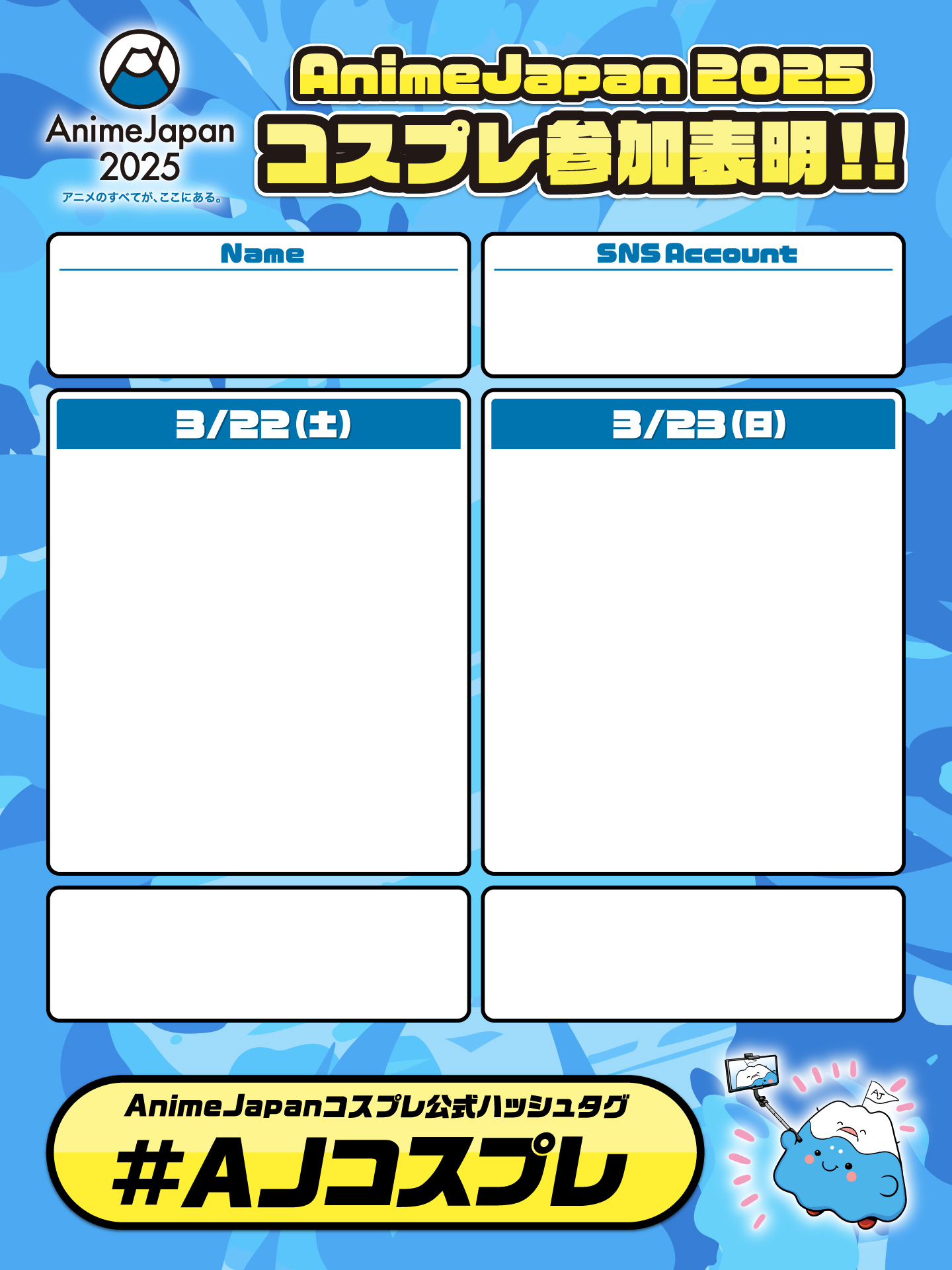 Cosplay Registration can be done at AnimeJapan 2025 venue, in the Cosplay Area (East Hall 7)