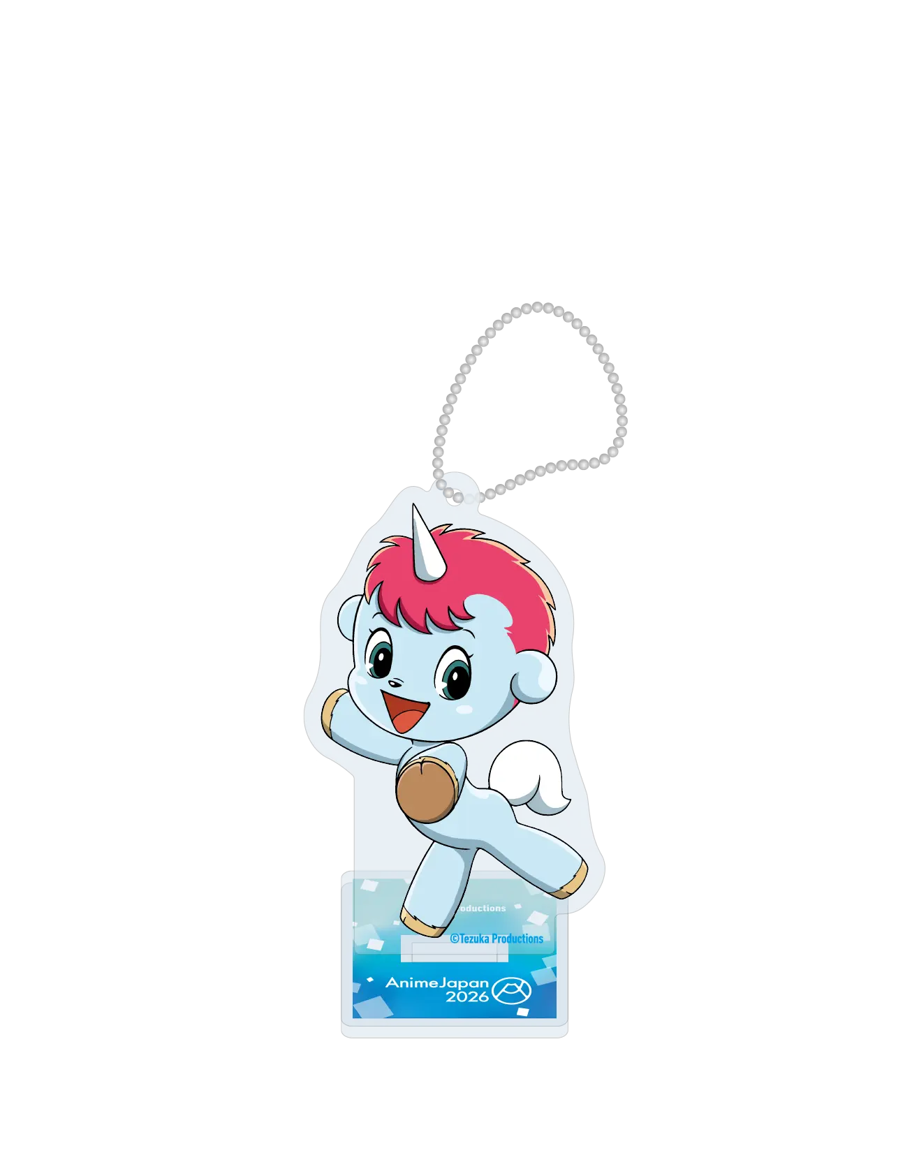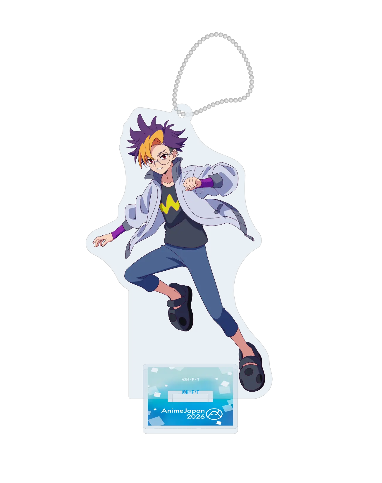 キービジュアルのイラストを使用したアクリルスタンド、チェーンをつけたらアクリルチャームにもなる2WAY仕様!